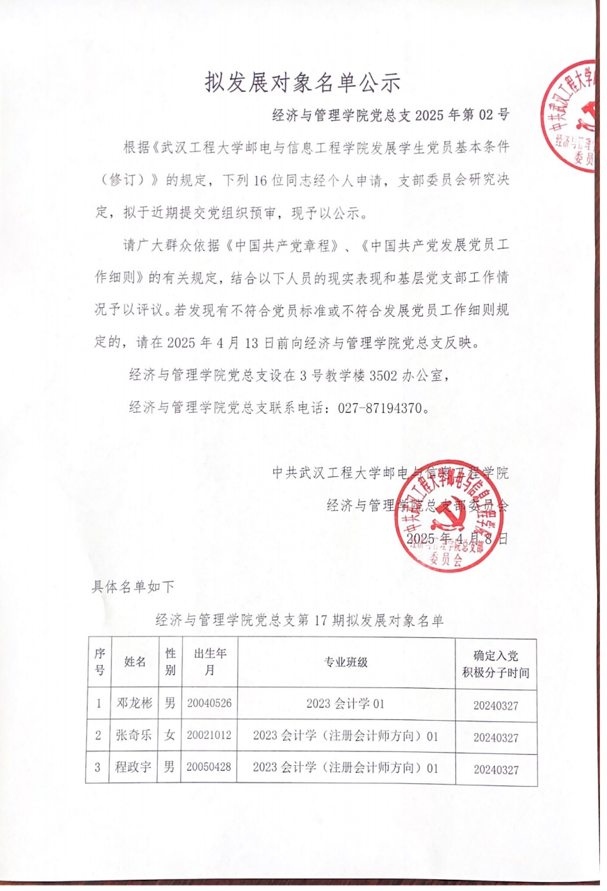 拟发展对象名单公示