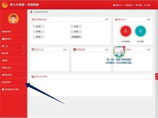 方法1:由团员本人登录系统进入个人中心,点击左侧“关系转接”,选择 转入组织是否属于北京/广东/福建、转接原因,根据提示选择完成申请。