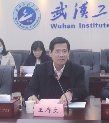 武汉工程大学校长王存文主持会议并作重要讲话。他指出,本次会议是基于当前高校培养社会主义合格建设者和可靠接班人、办人民满意的教育背景下召开的一次十分重要的会议,也是党史学习教育重要的实践和践行。他对本次会议提出了三点要求:一是要进一步提高认识,统一思想,形成共识,要站在讲政治高度、利用国际视野谋求双方发展的新阶段;二是要对邮电与信息工程学院的发展进行前瞻性地思考、战略性地谋划,主动对接和服务湖北省经济社会发展需要,形成全方位、多层次发展融合格局,探索应用技术型人才一体化培养能力模式;三是要务实创新,双方在落实协议上要进行全方位、一体化的合作,在合作机制、合作模式、管理体制机制上不断创新,通过共同培育,不断实践,形成具有扶持性、示范性的重大教育成果,促进邮电与信息工程学院全面、高质量地发展。