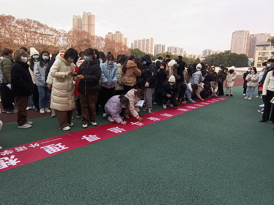 升旗仪式结束后,结合本次活动主题,外语学院团总支书记王敏带领全体同学在“用诚实谱写答卷,用奋斗追寻理想”横幅上签字承诺,营造“端正学风、严肃考纪”的氛围。