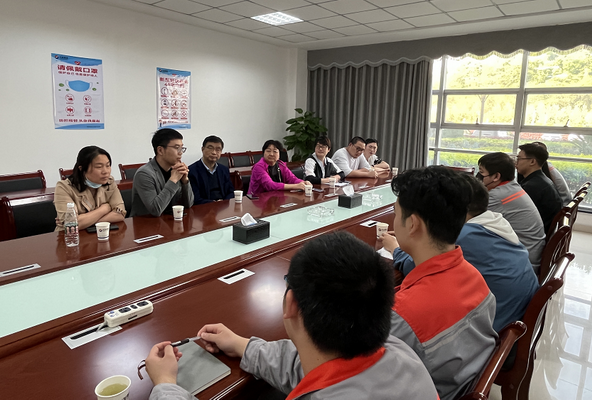 宣爱国一行还看望了在兴发集团技能实训中心授课的教师以及在兴发猇亭园区和宜都园区进行就业实习的学生。通过召开座谈会,了解了毕业生在实习期间毕业设计和职业规划方面遇到的问题并提出了相对应的建议和解决措施。采取校企双导师制指导毕业设计是毕业设计作品质量的有力保障,同时为毕业生合理分配毕业设计和毕业实习时间创造了条件。