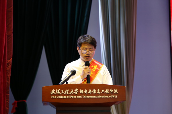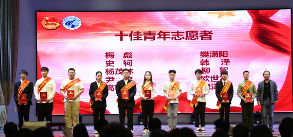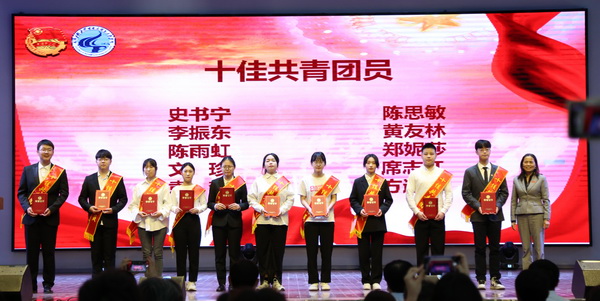 十佳共青团员代表、艺术设计学院史书宁同学,十佳青年志愿者代表、机械与电气工程学院韩泽同学分别发言。