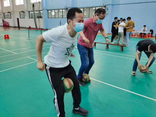 本次活动的游戏项目有加油站、一起来猜歌名、你画我猜、五毛一块、定点自由投、抢凳子、夹球跳、踢毽子等。体育馆中,宽阔的场地,整齐的设备,燥热的空气中流动着一丝迫切。游戏开始,老师们奔向不同区域,参与到富有节奏的抢凳子、有趣滑稽的夹球跳、跳跃灵活的踢毽子、配合默契的你画我猜等之中。整个体育馆被教职工们的热情点燃,大家卸下生活和工作上的压力,放松精神,重新散发出青春与活力。从活动开始到结束,参赛的每一个选手同呼吸、共命运,彼此加油、欢呼、喝彩。