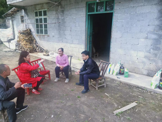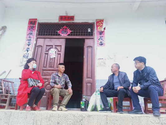 熊杰一行入户走访了谭连青、崔帮荣、陈词俊、谭明桂、李明奉、殷发菊六家脱贫户,详细询问了家庭生活状况,并送去慰问品。