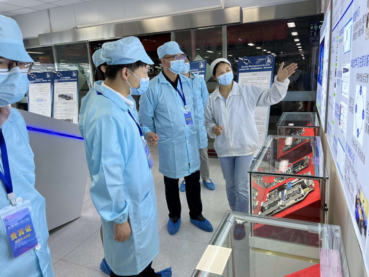 富士康武汉科技工业园主管黄坤瀛,人力资源部总监吴菲等部门负责人热情地接待了院长冯兵一行。在该公司负责人的陪同下,冯兵一行参观了灯塔工厂,详细了解了企业的发展情况、产业基地、用人需求、员工发展晋升渠道和薪酬福利等信息。