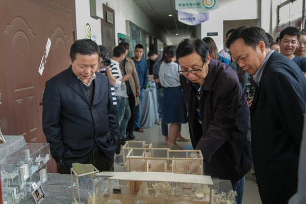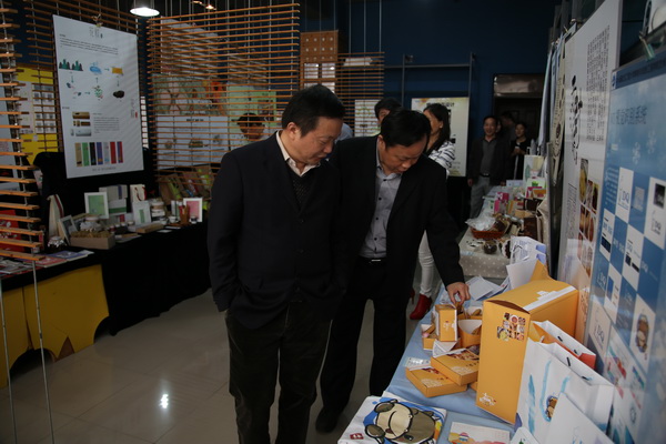 在建艺学部主任伊德元、副主任范汉忠的陪同下,学院领导兴致勃勃地参观了作品展,毕业设计指导老师和同学们向学院领导介绍了作品的设计过程和创新点。院长黄志良对作品展的举办表示祝贺,对毕业设计作品凸现的创新创意给予了充分肯定。他指出,本次展览作品主要特点是凸显创意和创新,作品在追求艺术设计水准的同时,又不失时代感,科学地将艺术实践和市场需求相结合,较好地将实用、美观、经济的创作原则融汇到作品中。院党委书记邓新洲指出,创新已经纳入学院的人才培养计划,建艺学部的学生思维更活跃,方式更灵活,做出了很好的表率,他希望同学们将创新性和实用性相结合,发挥自己的聪明智慧,为社会的发展作出贡献。
