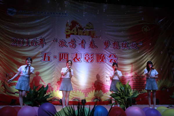 今年五•四表彰晚会以“激荡青春•梦想绽放”为主题,总结表彰,分享励志,激励后进,将表彰大会与文艺晚会合二为一、穿插进行,形式新颖,主题性强,弘扬了五•四精神,增强了广大团员青年的爱国主义情感,加深了青年师生对“中国梦”的理解,坚定人人要有梦想、都能成就梦想的信念。