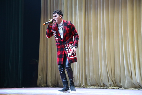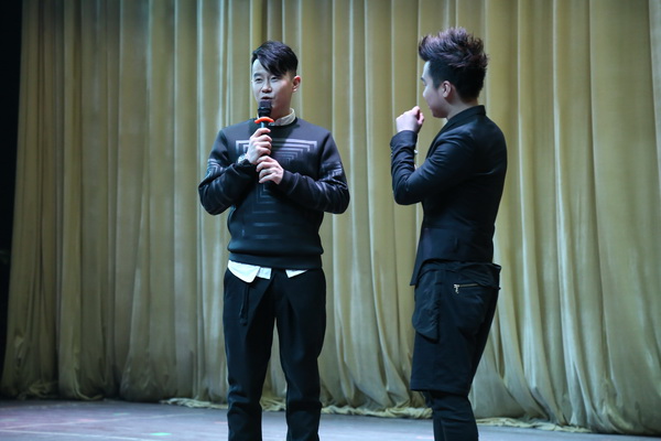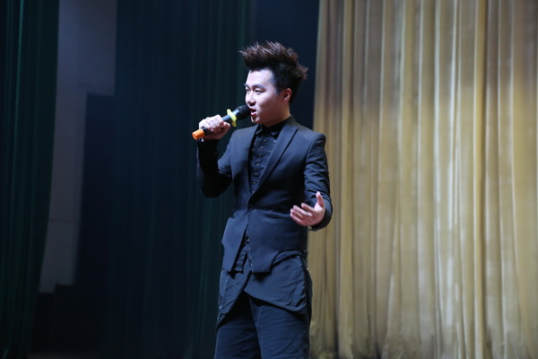 在师生们的共同期待与欢呼声中,主持人令狐帅气出场,他幽默的开场白引来了台下的阵阵掌声和欢笑声。在全场师生的倒计时声中请出了本次歌友会两大主角:王子建、罗马。首先,“先锋内地新人”王罗马为大家带来了他刚出道时的歌曲《心声》,拥有疗愈功效的男声,带着“从心而发”的情感与温度,感人至深,他的新歌《不愿意》深情描述了一段缠绵悱恻的感情经历。随后,“先锋唱跳小天王”王子建给师生们带来了《孩子气》等歌曲,让大家感受到了他的年轻朝气与活力。接下来的游戏互动环节,现场观众踊跃参与,气氛高涨。在王子建歌声的带动下,现场的“手机墙”闪现出一道亮丽的风景线,在全场手机的照亮下,本次歌友会落下帷幕。