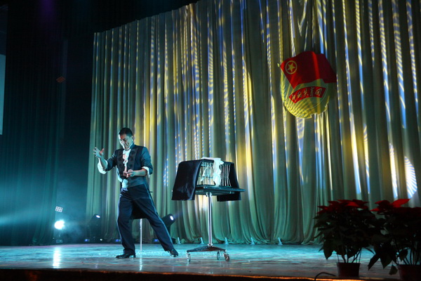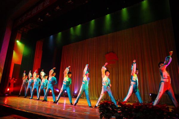 由武汉市歌剧舞剧院与我院大学生艺术团共同打造的这台歌舞晚会,规模宏大,气势磅礴。晚会在震撼人心的开场歌舞《相亲相爱》中拉开帷幕。舞蹈类节目:男子群舞《梅》,用精美的舞蹈演绎了梅花的秉性特点,冷艳、缕缕幽芳,愈是寒冷,愈开得精神;女子群舞《汉正街的娘子军》,讲述汉正街的一群女“扁担”中一位含辛茹苦供养女儿上大学的故事,舞者们用舞蹈动作将一位柔弱却坚强的母亲形象演绎得生动感人,作品中蕴含的情感共鸣感染了现场观众,赢得了热烈掌声。小品类节目《三个媳妇》讲述的是三个媳妇赡养老人的故事,作品的题材、人物与生活紧密相连,着重宣传了中华民族的传统美德——孝道,剧中角色表演生动传神,故事真挚感人,语言活泼。魔术表演《变换莫测》,徒手变鸽子,口吐彩带,在幻境里尽情的施法,把所有人都带进魔幻世界里,现场观众们享受着魔法带来的惊喜。我院大学生艺术团的拉丁舞蹈《挚爱》,速度多变,手势和脚步内容丰富,充满激情,音乐节奏鲜明强烈,展现了我院学子的多才多艺。除此之外,手风琴独奏、二胡合奏等多种表演形式,带给现场观众多元的感受。