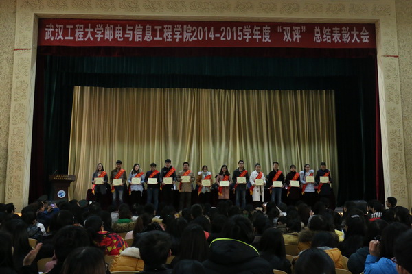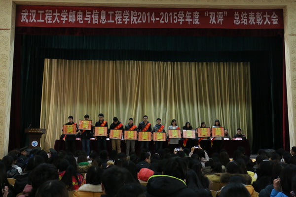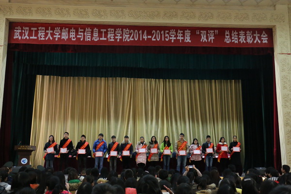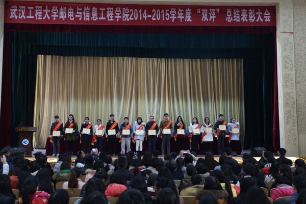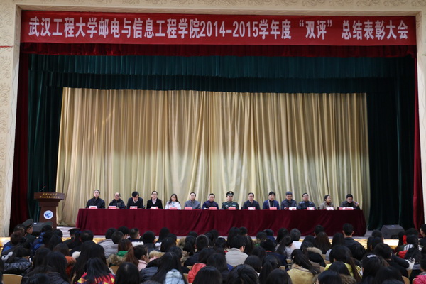 (通讯员胡旷)12月17日,我院2014-2015学年度“双评”总结表彰大会在大礼堂隆重举行。院长黄志良、党委书记邓新洲、党委副书记陈俊、纪委书记肖群枝、副院长叶健、副院长欧阳琼及邮科院校区副院长吴健学出席本次大会,湖北陆军预备役高炮师后勤部部长朱祥文上校受邀参加了本次表彰大会。学院相关职能部门负责人,各学部主任、副书记,全体辅导员,班主任以及各班级学生代表、获奖代表1000余人参加会议。会议由院长助理、学生工作处处长田文明主持。