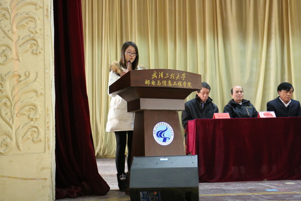 优良学风班班主任代表公共学部陈苗苗老师;特等奖学金获得者、优秀学生干部代表13级国际经济与贸易02班刘志丹同学;“挑战杯”湖北省三等奖获得者12级自动化01班梁进榜同学分别代表先进集体和优秀个人发言。他们以自身的故事、朴实的语言同大家分享了进步和收获的喜悦,并表示在未来的工作、学习和生活中,再接再厉,勇创佳绩。