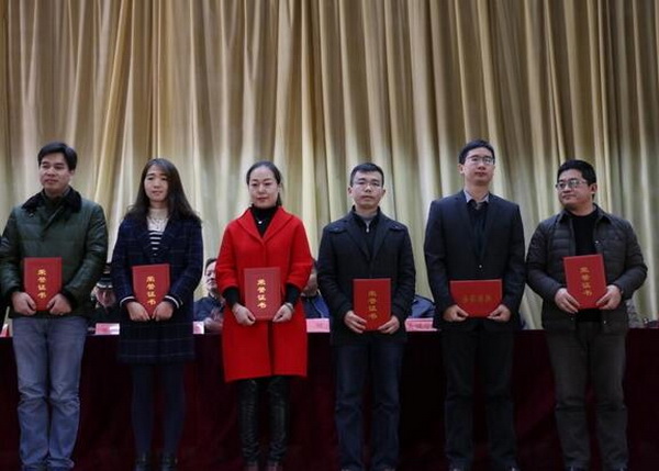 主席台领导分别为获得“优良学风班”、“特等奖学金”、“三好学生标兵”、“优秀学生干部”、“单项奖学金”荣誉称号的班级和学生代表颁发了荣誉证书和奖状。