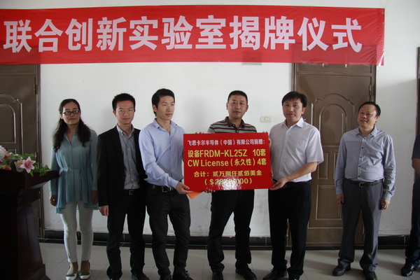 仪式结束后,来宾参观了电工电子实验教学中心和新建的联合实验室,对今后实验室承担创新型实践教学、飞思卡尔智能车培训、嵌入式系统的培训、公司技术方案吸收和成果转化、实际产业工程实践以及开发等任务达成共识。