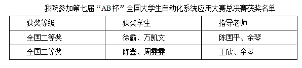 我院学子在第七届“AB杯”全国大学生自动化系统应用大赛中喜获两个全国二等奖