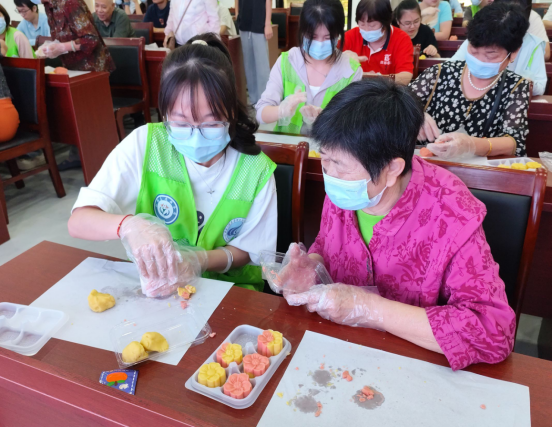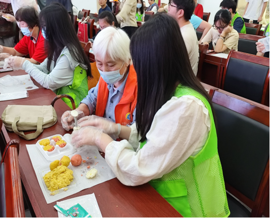 上午9:00至9:40,在工程大社区多功能会议室,化工与材料工程学院弘毅志愿者服务团的18名青年志愿者与20名社区热心居民一起学习制作绿豆糕。志愿者提前抵达现场布置场地、清洗工具,并在专业师傅瑞丰蛋糕王师傅的指导下,协助居民揉面、压模、包装。从称量原料到成品装箱,每个环节均由志愿者与居民协作完成,大家热情高涨,现场欢声笑语不断。